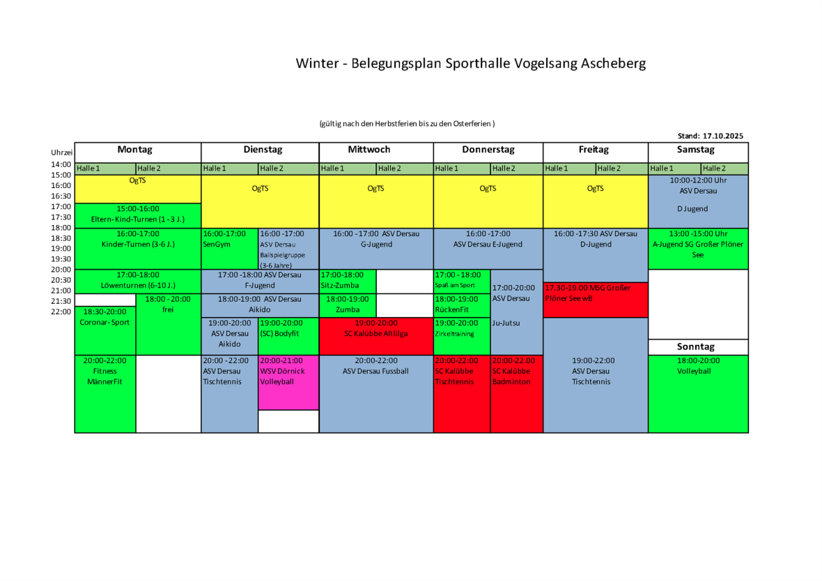 HALLENBELEGUNGSPLAN ASCHEBERG WINTER
