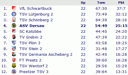 Abschlusstabelle A-Klasse 1973/74
