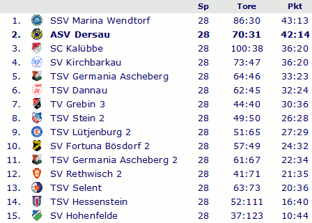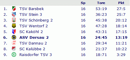 Abschlusstabelle B-Klasse Plön 1977/78