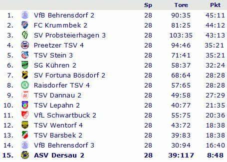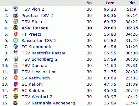 Abschlusstabelle Kreisliga Plön 1981/82