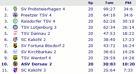 Abschlusstabelle Kreisliga Plön 1983/84
