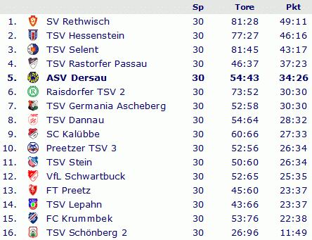 Abschlusstabelle C-Klasse Plön 1983/84