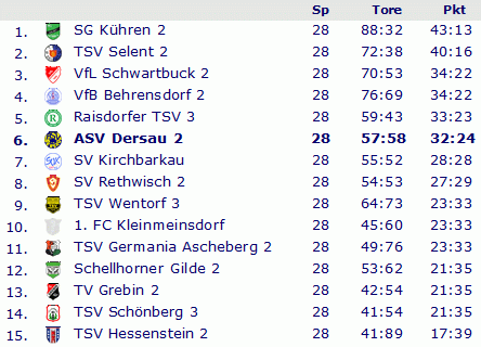 Abschlusstabelle Kreisliga Plön 1990/91