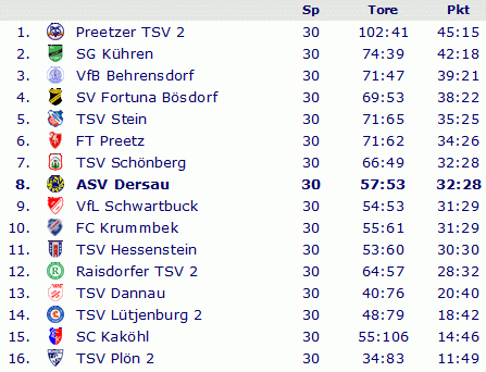 Abschlusstabelle B-Klasse Plön 1990/91