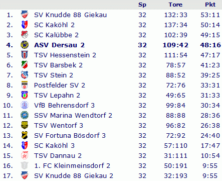 Abschlusstabelle Kreisliga Plön 1992/93
