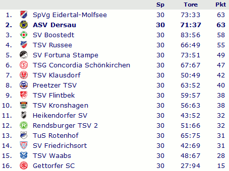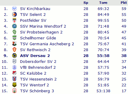 Abschlusstabelle Bezirksliga Ost 1995/96