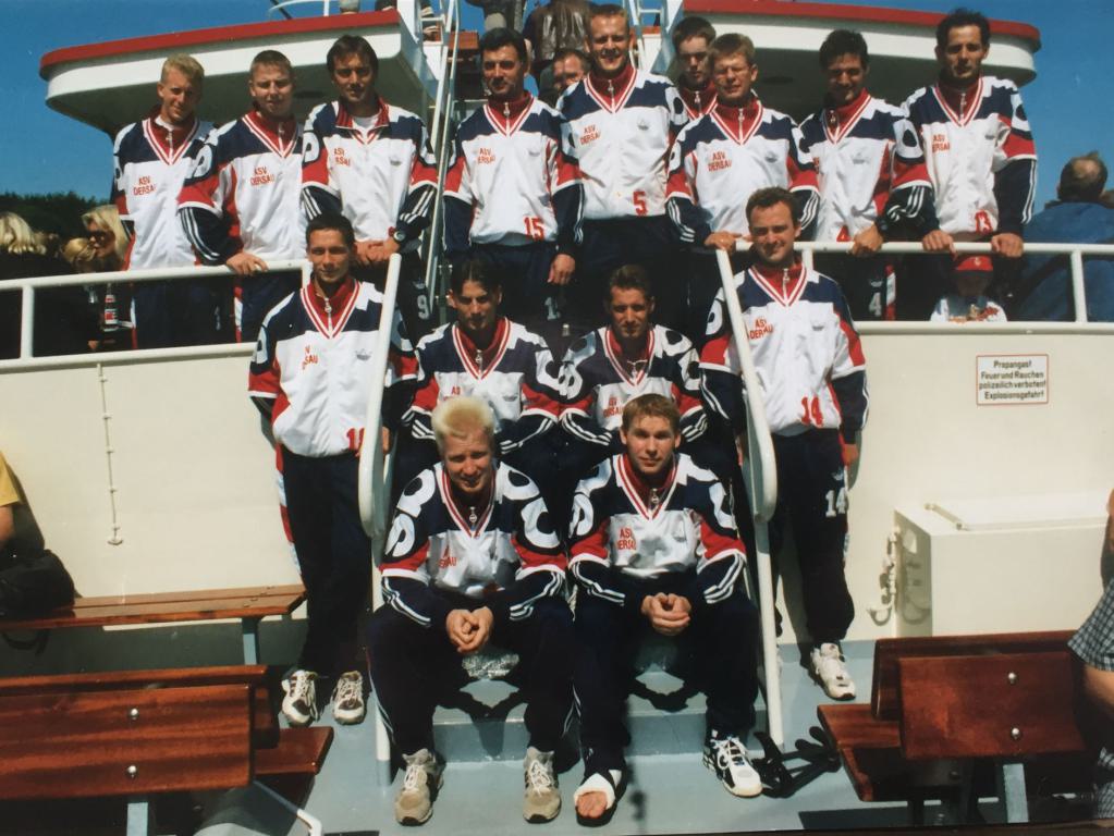 Oben von links: Thorsten Ahlf, Andreas Evers, Holger Böttcher, Wlody Zemojtel, Andreas Köhler, Lars Neumann, Thorsten Schade, Fatmir Zymberi