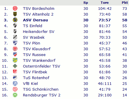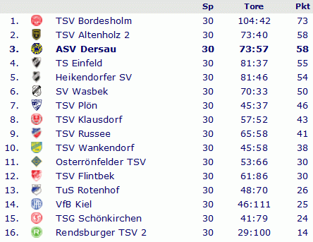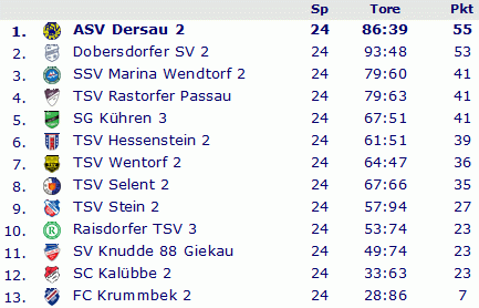 Abschlusstabelle B-Klasse Plön 1998/99