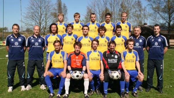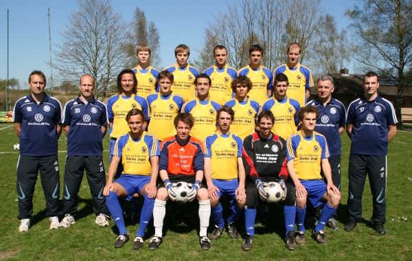 Mitte von links: Co-Trainer Holger Böttcher, Trainer Jörn Hinrichsen, Marc Burdinski, Tobias Wilfert, Nouri Maatoug, Lieven Beyer, Florian Hauschildt, TW-Trainer Wlody Zemojtel, Betreuer Jan Lambert
