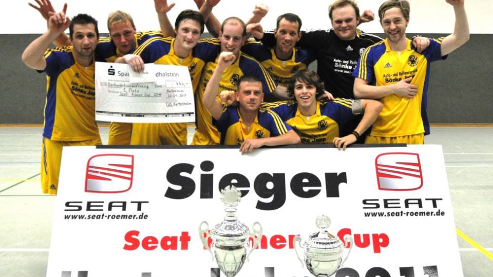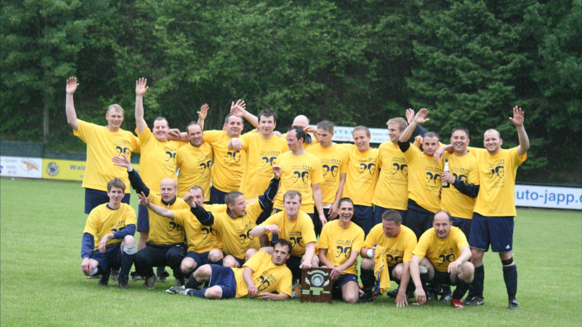 Obere Reihe von links: Trainer Jörn Hinrichsen, Stefan Kuberski, Arton Etemaj, Florian Hauschildt, Dennis Meyer, Carsten Hintz, Mark Rockel, Henning Knoll, Momme Grossfeld, Tim Junker, Sönke Knoll, Tobias Wilfert