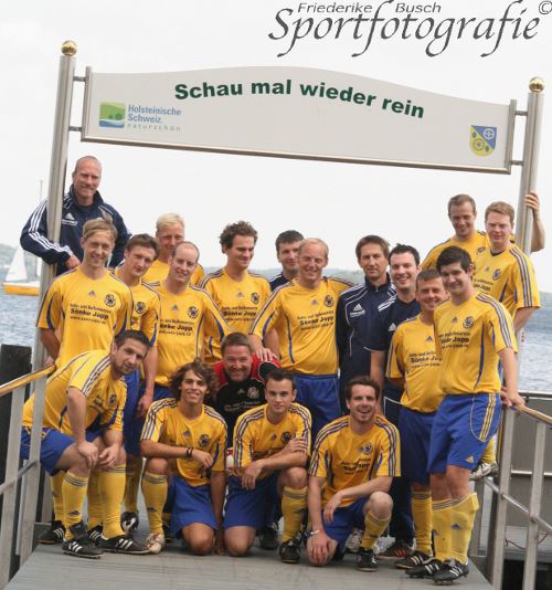 Oben von links: Trainer Jörn Hinrichsen, Tim Junker, Tobias Wilfert, Carsten Hintz, Dennis Meyer, Momme Großfeld, Betreuer Thorsten Schuldt, Stefan Kuberski, Co-Trainer Thorsten Böttcher, Betreuer Jan Lambert, Mike Lindemann Florian Hauschilst, Mathias Sachau, Martin Lüth