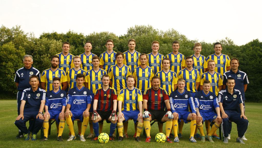 Untere Reihe von links: Co-Trainer Thorsten Böttcher, Sebastian Ruhnau, Fatlum Zymberi, Florian Hauschildt, Martin Lüth, Frank Baumnn, Marten Biss, Marcel Maring, Co-Trainer Björn Klitzke