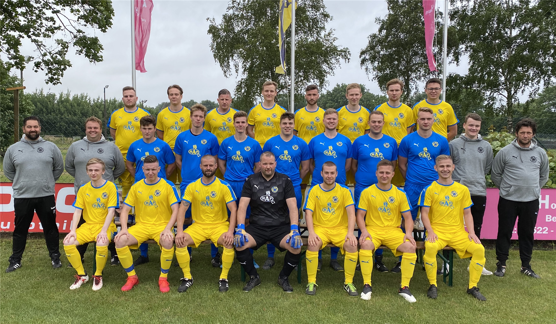 Mitte von links: Trainer Heiko Noack, Tim Kaufmann, Jens Tietgen, Tim Schäfer, Benjamin Jordt, Henrik Harms, Felix Terhar, Linus Terhar, Hinnerk Jalas, Kai Bülk, Co-Trainer Michael Reich