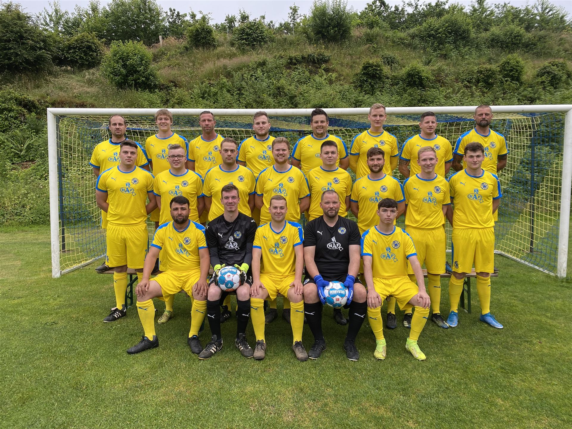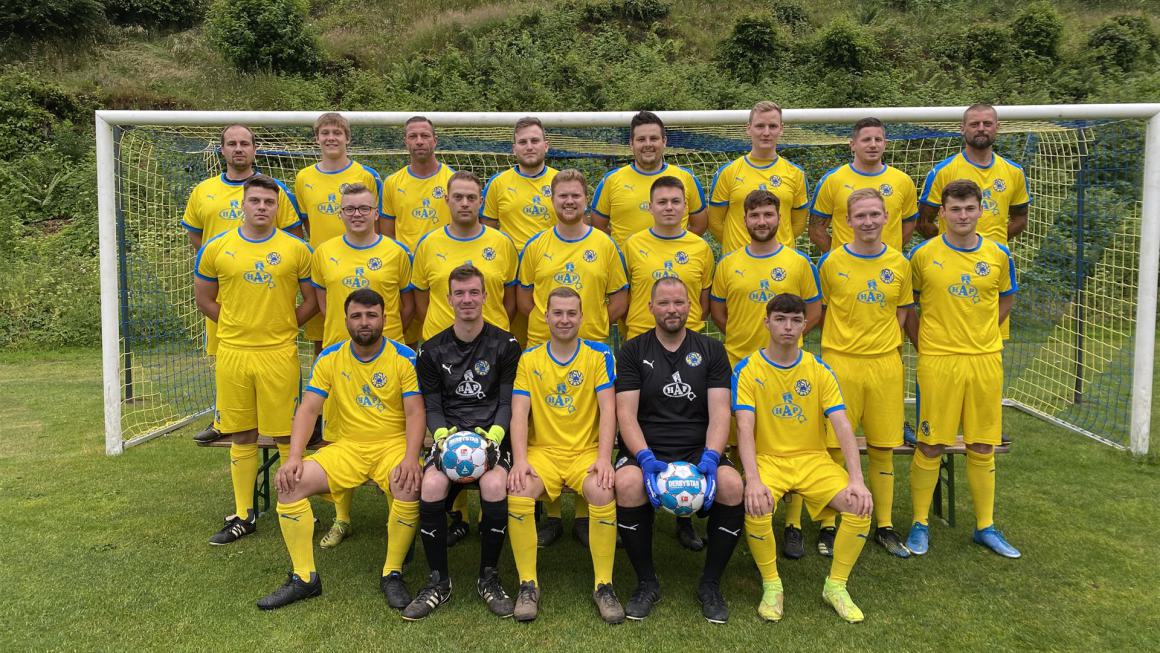 Hintere Reihe von links: Steffen Uhl, Mariglen Guce, Timon Biss, Kevin Ohler, Marten Biss, Collins Chukwu, Hendrik Ohler