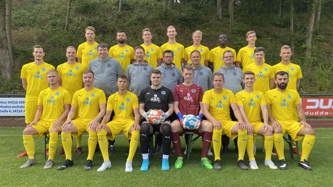 Untere Reihe von links: Felix Eidenschink, Ilias Pappas, Miles Thielecke, Felix Köbis, Simon Ehrck, Alexander Mischker, Faustino Fernandez, Shefqet Smajli